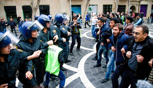 Photo by Aziz Karimov shows a protest action in center of Baku on 17 March 2013