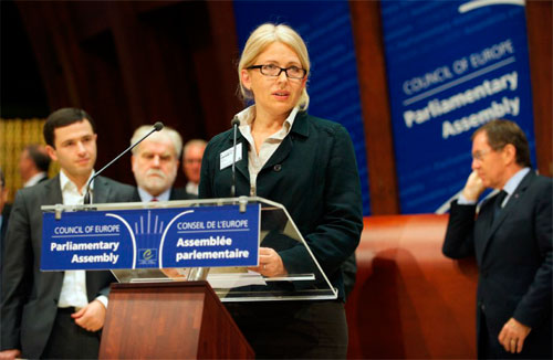 Ввиду того, что г-н Беляцкий в настоящее время находится в заключении, награда была сегодня вручена его жене Наталье Пинчук (на фото) в ходе торжественной церемонии во Дворце Европы в Страсбурге в день открытия осенней пленарной сессии Парламентской ассамблеи Совета Европы (ПАСЕ).
