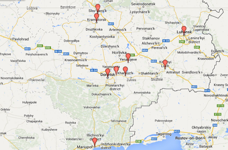 На даный момент сепаратисты контролируют админздания в 8 городах Донецкой области, в частности, в Макеевке, Мариуполе, Краматорске, Харцызске, Енакиево.