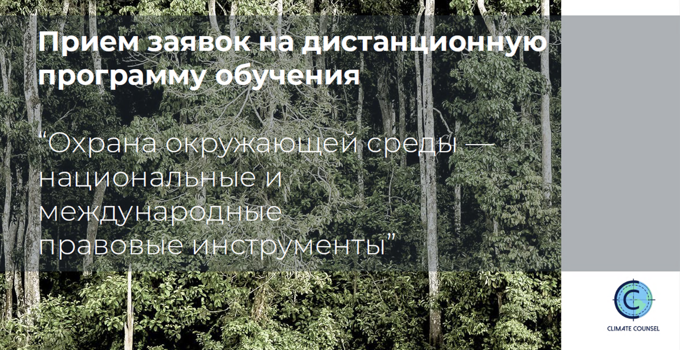 Climate Counsel приглашает юристов из России на дистанционную программу обучения «Охрана окружающей среды — национальные и международные правовые инструменты».